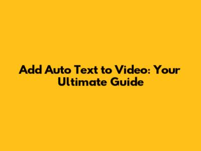 Add Auto Text To Video: Your Ultimate Guide