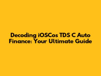 Decoding IOSCos TDS C Auto Finance: Your Ultimate Guide