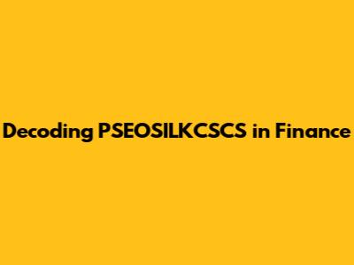 Decoding PSEOSILKCSCS In Finance