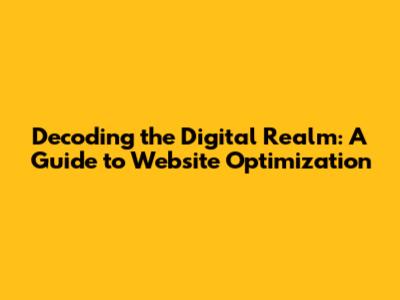 Decoding The Digital Realm: A Guide To Website Optimization