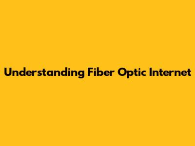 Understanding Fiber Optic Internet