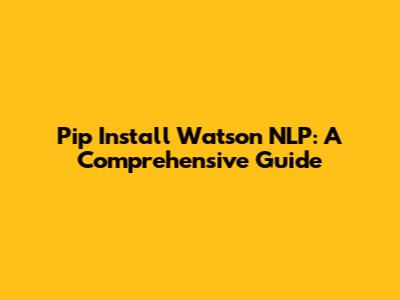 Install Watson NLP With Pip: A Quick Guide