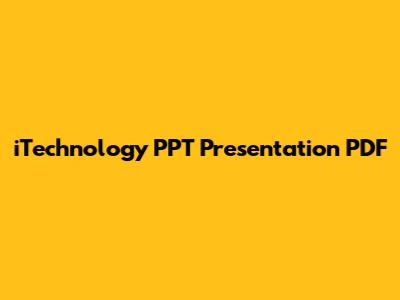 ITechnology PPT: Downloadable Presentations In PDF