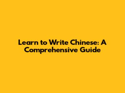 Learn To Write Chinese: A Comprehensive Guide