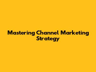 Mastering Channel Marketing Strategy