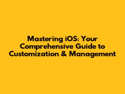 Mastering IOS: Your Comprehensive Guide To Customization & Management