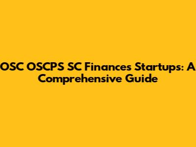 OSC OSCPS SC Finances Startups: A Guide