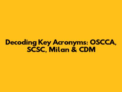 OSCCA, SCSC, Milan & CDM: Decoding Key Acronyms