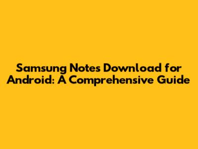 Samsung Notes Download For Android: A Comprehensive Guide