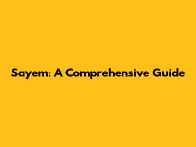 Sayem: A Comprehensive Guide