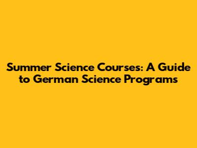 Summer Science Courses: A Guide To German Science Programs