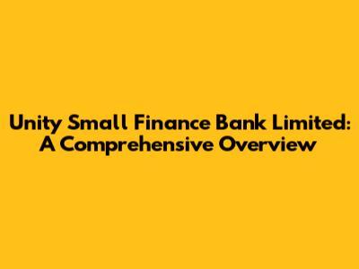Unity Small Finance Bank: A Comprehensive Overview