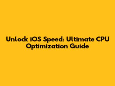 Unlock IOS Speed: Ultimate CPU Optimization Guide