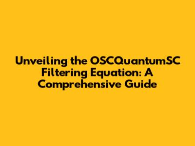 Unveiling The OSCQuantumSC Filtering Equation: A Comprehensive Guide